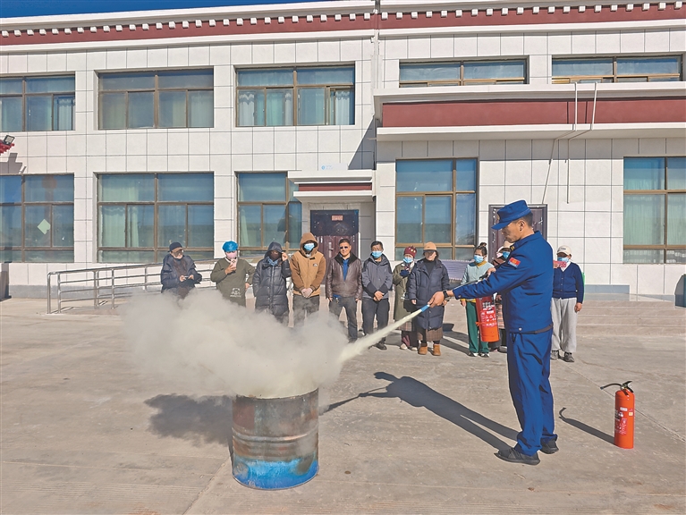 བོད་རང་སྐྱོང་ལྗོངས་མེ་ཟོན་རོགས་སྐྱོབ་སྤྱི་ཁྱབ་རུ་ཁག་གིས་མེ་ཟོན་བདེ་འཇགས་སྲུང་བའི་རིམ་སྤེལ་བྱ་སྤྱོད་སྤེལ་བ།