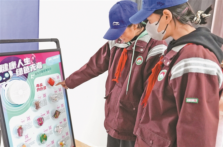 སློབ་མ་ཚོའི་དུག་རྫས་སྔོན་འགོག་གི་འདུ་ཤེས་ཟབ་ཏུ་གཏོང་ཆེད། མི་དམངས་ཉེན་རྟོག་པས་དུག་རྫས་གསར་པའི་འབྲེལ་ཡོད་ཤེས་བྱར་འགྲེལ་བཤད་རྒྱག་བཞིན་པ།