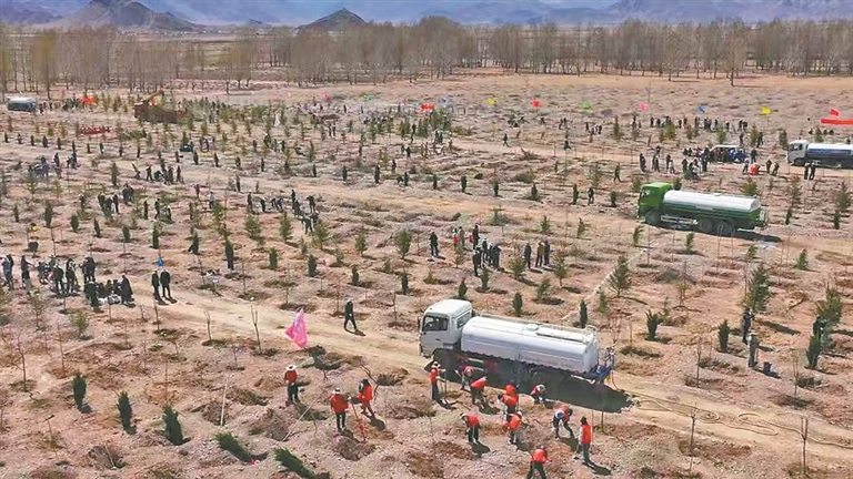 ཉིན་ཤས་བསྟུད་མར། རང་ལྗོངས་ཀྱི་ས་ཆ་ཁག་གིས་དཔྱིད་དུས་ཀྱི་ཤིང་འཛུགས་དུས་ཚོད་ཡག་ཤོས་དམ་འཛིན་བྱས་ནས་འོས་འགན་ཤིང་འཛུགས་ཀྱི་བྱེད་སྒོ་སྤེལ་ཏེ་བྱ་སྤྱོད་དངོས་ཀྱི་ཐོག་ནས་གངས་ལྗོངས་ས་མཐོར་སྔོ་ལྗང་གི་གོས་བཟང་བཀླུབས་དང་ཀླུབ་བཞིན་ཡོད་པ་རེད།