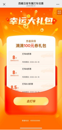 ཟླ་4ཚེས་22ཉིན《བོད་ལྗོངས་ཉིན་རེའི་ཚགས་པར》བཏོན་ནས་ལོ་ངོ་70ཏག་ཏག་འཁོར་གྱི་ཡོད་པས། རྒྱ་ཆེའི་ཀློག་པ་པོ་ཚོས་ཡུན་རིང་རྒྱབ་སྐྱོར་གནང་བར་ཐུགས་རྗེ་ཆེ་ཞུ་ཆེད། བོད་ལྗོངས་ཉིན་རེའི་ཚགས་པར་གྱི་སྤྱོད་སྣེ(客户端)དང་ཏི་ཏི་ཕྱིར་སྐྱོད(滴滴出行)ཀྱིས་མཉམ་དུ་ཉིན་ལྟར་སྒོར་100ཡི་ཏི་ཏི་འཁོར་འབོད་འཛིན་ཤོག་700སྤྲོད་རྒྱུ་ཡིན་པ་རེད།