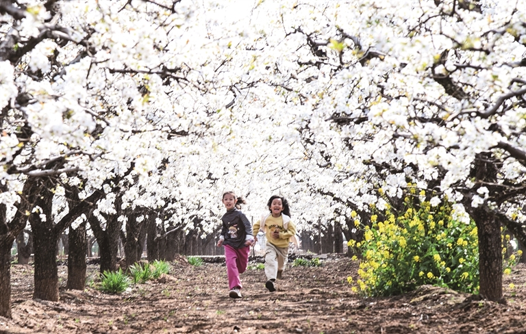 དཔྱིད་ཀྱི་དཔལ་ཡོན་རབ་ཏུ་བཞད། སྣ་མང་མེ་ཏོག་མྱོང་རོལ་བྱེད།