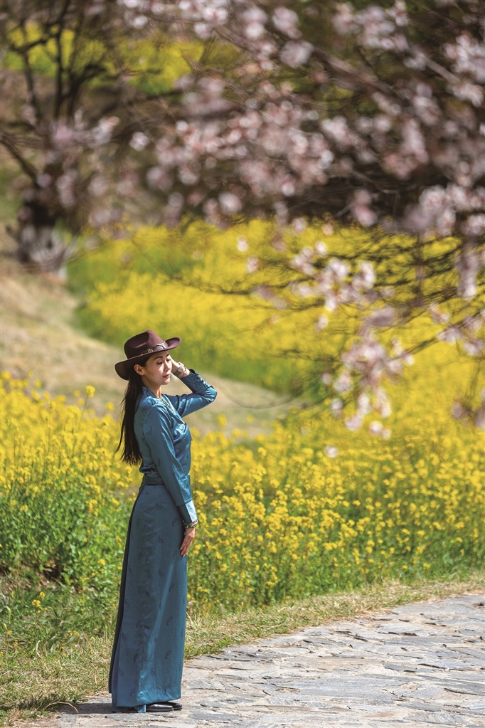 དཔྱིད་ཀ་ཤར་ཚུན། “གངས་ལྗོངས་ཀྱི་སྔོ་ལྗང་མཛེས་ལྗོངས་ཁུལ”ཞེས་གྲགས་པའི་བོད་ལྗོངས་ཉིང་ཁྲིར་དྲོད་རིམ་བཞིན་སླེབས་ནས་ཉང་ཆུ་དང་ཡར་ཀླུང་གཙང་པོ་རྒྱུག་ཁུལ་གྱི་ལེ་དབར་བརྒྱ་ལྷག་ཙམ་གྱི་སར་རི་སྐྱེས་ཁམ་བུའི་མེ་ཏོག་ཕན་ཚུན་འགྲན་པ་ལྟར་བཞད་དེ། བརྗིད་ཉམས་ལྡན་པའི་གངས་རི་དང་ཕན་ཚུན་གཅིག་ལ་གཅིག་རྒྱན་དུ་གྱུར་ནས་ཡུལ་སྐོར་བ་ཚོའི་ཡིད་ཀྱི་བརྟན་པ་ཅིག་ཅར་དུ་འཕྲོགས་ཤིང་། འདི་ནི་ཡུལ་སྐོར་བ་ཞིག་གིས་ཉིང་ཁྲི་གྲོང་ཁྱེར་བྲག་ཡིབ་ཆུས་ཀ་ལ་གྲོང་ཚོར་དྲན་རྟེན་པར་རྒྱག་བཞིན་པ།