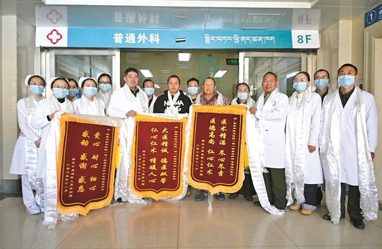 ནང་མི་ཚང་མ་རེ་ཐག་ཆད་པའི་གནས་སུ་གྱར་སྐབས། བོད་དམག་ཁུལ་ཁང་སྤྱི་ཁྱབ་སྨན་ཁང་གི་ཕྱི་ནད་ཚན་ཁག་གི་སྨན་བཅོས་ཚོགས་པས་གནད་སྨིན་བརྡར་གཅོད་བྱས་ཏེ། གཤགས་བཅོས་མ་བྱས་པར་བློ་ཁོག་ཆེན་པོས་ཁྲག་རྩ་མི་འགག་པའི་སྨན་བཅོས་ཇུས་གཞི་ལག་ལེན་བསྟར་བ་བརྒྱུད། མཐར་ནད་པ་ཉེན་ཁ་ལས་ཐར་ཏེ་2025ལོའི་ཟླ་11ཚེས་21ཉིན་སྨན་ཁང་ནས་བདེ་བླག་ངང་དོན་པ་རེད།