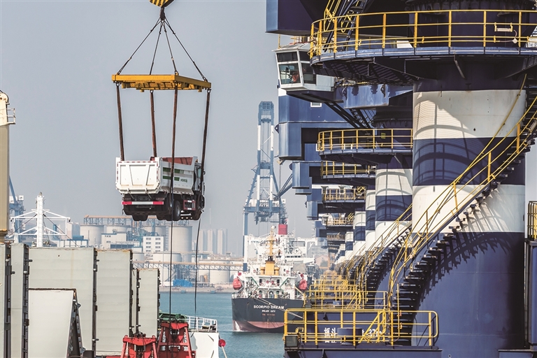 ཉེ་ཆར། ཧྲན་ཏུང་གྲུ་ཁའི་གཡན་ཐའེ་གྲུ་ཁར་ཟོག་འདྲེན་རླངས་འཁོར་དང་། སྣུམ་འདྲེན་རླངས་འཁོར། ཨར་འདམ་གཡོས་འཁོར་སོགས་སྔ་རྗེས་སུ་གྲུར་བླུགས་ནས་ཨ་ཧྥེ་རི་ཁར་ཕྱིར་གཏོང་བྱེད་རྩིས་ཡོད་པ་རེད། ད་ལོའི་དུས་ཚིགས་དང་པོར་གཡན་ཐའེ་གྲུ་ཁ་ནས་ཀྲུང་གོ་དང་ཨ་ཧྥེ་རི་ཁའི་དོ་རྩིས་དངོས་པོ་སྐྱེལ་འདྲེན་བྱེད་ཚད་ཏུན་ཁྲི་200ལས་བརྒལ་བ་དེ་དུས་མཚུངས་ལས་31.9%འཕར་བ་དང་། སྐྱེལ་འདྲེན་དངོས་ཟོག་དེ་རིགས་ཨ་ཧྥེ་རི་ཁའི་རྒྱལ་ཁབ་ཀྱི་རྨང་གཞིའི་འཛུགས་སྐྲུན་དང་དམངས་འཚོའི་དགོས་མཁོ་དང་ཧ་ཅང་འཚམ་པོ་ཡོད་པ་རེད།