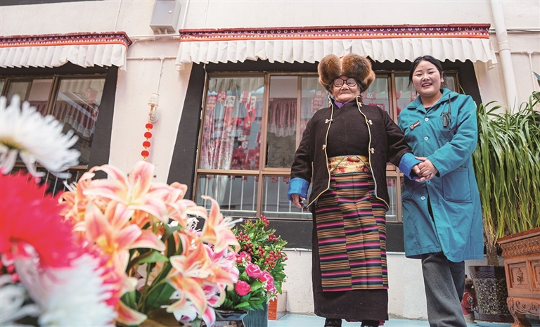 ད་ཆ། ཚེ་བདེ་སྐྱིད་ཟངས་རི་རྫོང་གི་དམིགས་བསལ་དཀའ་ངལ་ཡོད་པའི་མི་སྣའི་གཅིག་སྡུད་བསྙེན་བཀུར་ལྟེ་གནས་སུ་རྒན་རྒོན་80དང་མཉམ་དུ་འཚོ་བ་སྐྱེལ་བཞིན་ཡོད་པ་དང་འཚོ་བའི་ཕྱོགས་གང་སར་ལྟ་རྟོག་གང་ལེགས་བྱུང་ཡོད། རྒན་རྒོན་ཚོར་གྲོང་གསེབ་ཀྱི་མཉམ་ལས་སྨན་བཅོས་འགན་སྲུང་ལོངས་སྤྱོད་བྱ་རྒྱུ་ཡོད་པ་དང་དམིགས་བསལ་དཀའ་ངལ་ཡོད་པའི་མི་སྣའི་སྨན་བཅོས་འགྲོ་གྲོན་དང་འདས་འཇུག་གི་འགྲོ་གྲོན་ཚང་མར་འགན་སྲུང་ཡོད་པས་ཁོང་གི་སེམས་ཁྲལ་ཡོངས་སུ་སེལ་ཞིང་། འཚོ་ཐབས་ཆེད་དཀའ་ལས་རྒྱག་མི་དགོས་པ་དང་། ཉིན་གཅིག་གི་ལྟོ་དུས་གསུམ་སྣ་ཁ་འཛོམས་ལ་འཚོ་བཅུད་ཆེ་བ། སྡོད་གནས་ཀྱི་ཁོར་ཡུག་ལེགས་ལ་གནས་བཟོད་བདེ་བ་བཅས་ཚེ་བདེ་སྐྱིད་ཀྱི་ཚེ་མཇུག་གི་འཚོ་བར་དྲོ་སྐྱིད་དང་བདེ་སྐྱིད་ཀྱིས་ཁེངས་ཡོད།