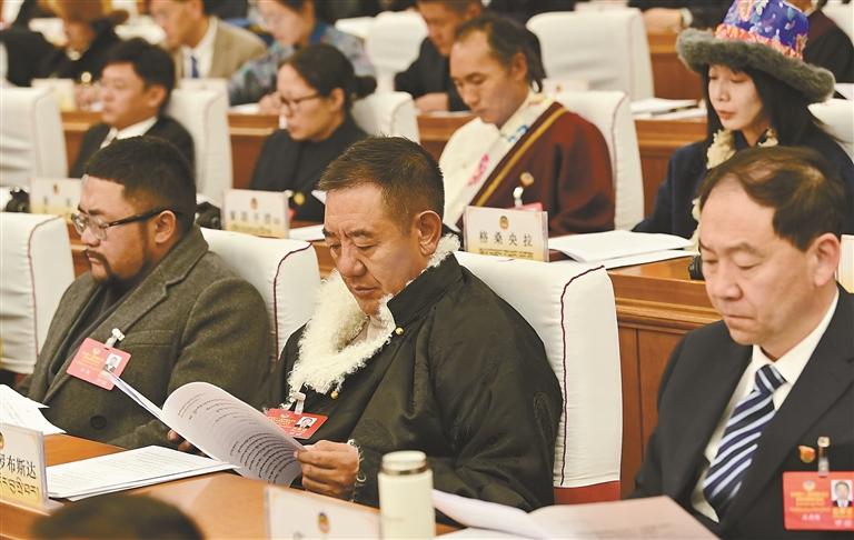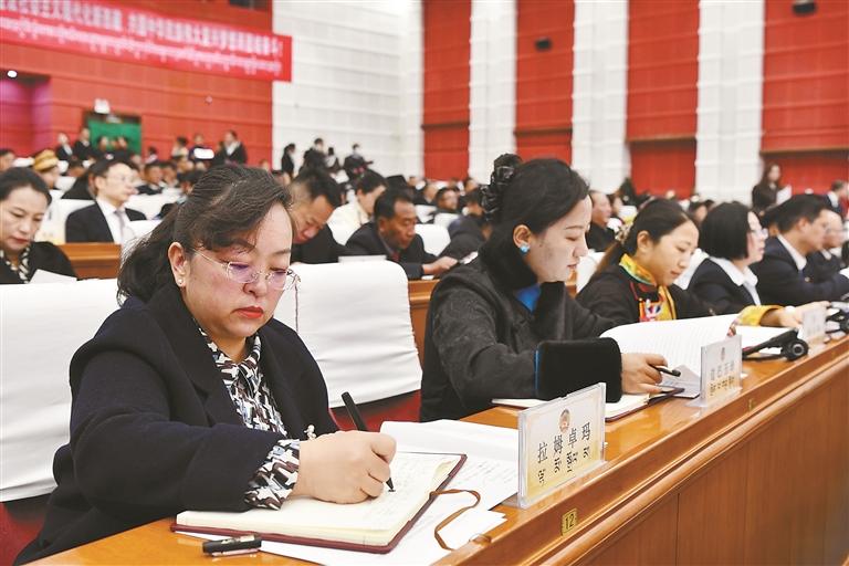 རྒྱལ་ཡོངས་སྲིད་གྲོས་ཀྱི་ཀྲུའུ་ཞི་གཞོན་པ་དང་རང་སྐྱོང་ལྗོངས་སྲིད་གྲོས་ཀྱི་ཀྲུའུ་ཞི་འཕགས་པ་ལྷ་དགེ་ལེགས་རྣམ་རྒྱལ་གྱི་བཀའ་མངགས་ལྟར། རང་སྐྱོང་ལྗོངས་སྲིད་གྲོས་ཏང་ཙུའི་ཧྲུའུ་ཅི་གཞོན་པ་དང་ཀྲུའུ་ཞི་གཞོན་པ་མོང་ཞའོ་ལིན་གྱིས་སྲིད་གྲོས་སྐབས་བཅུ་གཉིས་པའི་བོད་རང་སྐྱོང་ལྗོངས་ཨུ་ཡོན་ལྷན་ཁང་རྒྱུན་ལས་ཨུ་ཡོན་ལྷན་ཁང་གི་ཚབ་ཞུས་ནས་ཚོགས་ཆེན་ཐོག་ལས་དོན་སྙན་སྒྲོན་གནང་བ་དང་། རང་སྐྱོང་ལྗོངས་སྲིད་གྲོས་ཀྱི་ཀྲུའུ་ཞི་གཞོན་པ་སྒྲོལ་དཀར་གྱིས་ཚོགས་ཆེན་ཐོག་སྲིད་གྲོས་སྐབས་བཅུ་གཉིས་པའི་ཚོགས་འདུ་ཐེངས་གསུམ་པ་འཚོགས་ཚུན་གྱི་གྲོས་གཞིའི་ལས་དོན་བསྒྲུབས་ཚུལ་གྱི་སྙན་སྒྲོན་གནང་བ་རེད།
