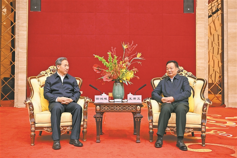 ཝང་ཅུན་ཀྲེང་གིས་ཀྲུང་གོ་ཚོང་དོན་སྐུལ་སྤེལ་མཐུན་ཚོགས་ཀྱི་ཚོགས་གཙོ་རེན་ཧུང་པིན་དང་བཞུགས་མོལ་གནང་བ།