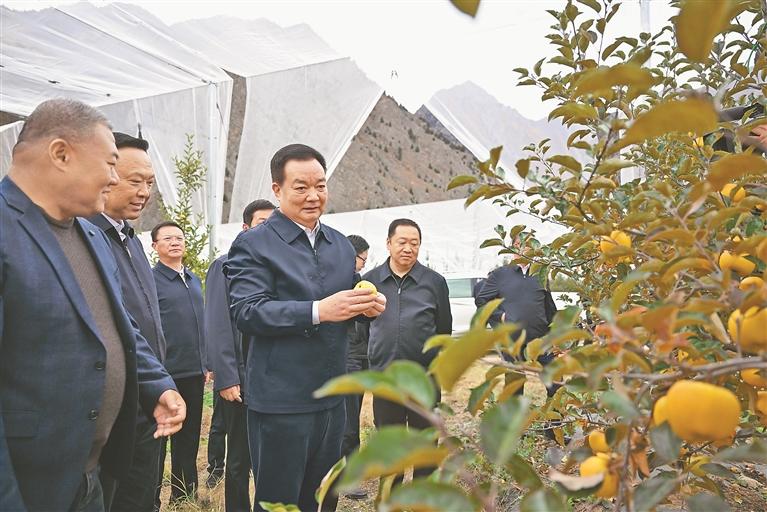 ཟླ་10ཚེས་29དང་ཚེས་30ཉིན་རང་སྐྱོང་ལྗོངས་ཏང་ཨུད་ཀྱི་ཧྲུའུ་ཅི་ཝང་ཅུན་ཀྲེང་ཉིང་ཁྲི་གྲོང་ཁྱེར་དང་ལྷོ་ཁ་གྲོང་ཁྱེར་གྱི་ལས་ཁུངས་སུ་ཕེབས་པ་དང་། ཞིང་དུད་ལ་འཚམས་འདྲི་གནང་བ། བཟོ་ཁང་དུ་ཕེབས་པ། རྣམ་གྲངས་ལ་གཟིགས་པ་བཅས་གནང་ནས་ཏང་གི་སྐབས་ཉི་ཤུ་པའི་ཀྲུང་ཨུ་ཚང་འཛོམས་གྲོས་ཚོགས་ཐེངས་བཞི་པའི་དགོངས་དོན་སྒྲོག་འགྲེལ་གནང་བ་དང་སྦྲགས། དཔལ་འབྱོར་དང་སྤྱི་ཚོགས་འཕེལ་རྒྱས་ལ་སྐུལ་འདེད་གཏོང་བའི་ལས་དོན་ཁག་ལ་བརྟག་ཞིབ་གནང་ཞིང་། ཁོང་གིས་ཏང་གི་སྐབས་ཉི་ཤུ་པའི་ཀྲུང་ཨུ་ཚང་འཛོམས་གྲོས་ཚོགས་ཐེངས་བཞི་པའི་དགོངས་དོན་སློབ་སྦྱོང་དང་། དྲིལ་བསྒྲགས། ལག་བསྟར་བཅས་ནན་ཏན་བྱས་ཏེ་རིགས་པའི་གཞུང་ལུགས་དང་དོན་དངོས་ཟུང་འབྲེལ་བྱེད་པའི་སློབ་སྲོལ་དར་སྤེལ་གཏོང་བ་དང་། དོན་དངོས་དང་ཟུང་འབྲེལ་གྱིས“ལོ་ལྔ་ཚན་བཅོ་ལྔ་པའི”འཕེལ་རྒྱས་ཚན་རིག་དང་མཐུན་པའི་སྒོ་ནས་ཇུས་འགོད་བྱེད་པ། བརྟན་ལྷིང་དང་། འཕེལ་རྒྱས། སྐྱེ་ཁམས། མཐའ་སྟོབས་བཅས་དོན་ཆེན་བཞིར་རྒྱུན་སྲིང་ལྷོད་མེད་ངང་དམ་འཛིན་ཡག་པོ་བྱས་ཏེ། སྤྱི་ཚོགས་རིང་ལུགས་དེང་རབས་ཅན་གྱི་བོད་ལྗོངས་གསར་པ་ཧུར་ཐག་སྐྲུན་དགོས་ཞེས་ནན་བཤད་གནང་བ་རེད།