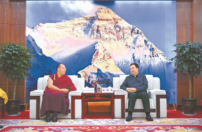 ཉེ་ཆར། རང་སྐྱོང་ལྗོངས་ཏང་ཨུད་ཀྱི་ཧྲུའུ་ཅི་ཝང་ཅུན་ཀྲེང་གིས་གཞིས་རྩེ་གྲོང་ཁྱེར་དུ་ཆོས་ལུགས་ལས་དོན་སྐོར་ལ་བརྟག་ཞིབ་གནང་ཞིང་། བརྟག་ཞིབ་གནང་རིང་། ཝང་ཅུན་ཀྲེང་གིས་པཎ་ཆེན་ཨེར་ཏེ་ནི་ཆོས་ཀྱི་རྒྱལ་པོར་མཇལ་འཕྲད་གནང་བ།