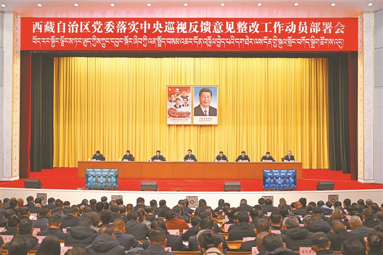 ཝང་ཅུན་ཀྲེང་གིས་ནན་བཤད་གནང་དོན། དུས་རབས་གསར་པའི་ཏང་གི་བོད་སྐྱོང་མཛད་ཇུས་ཆ་ཚང་བ་དང་། གནད་ལ་འཁེལ་བ། ཕྱོགས་ཡོངས་བཅས་ཀྱི་སྒོ་ནས་ལག་ལེན་བསྟར་ཏེ། དག་ཐེར་གྱི་ཕན་འབྲས་དེ་ཡུན་རིང་བདེ་འཁོད་དང་སྤུས་ཚད་མཐོ་བའི་འཕེལ་རྒྱས་ལ་སྐུལ་འདེད་གཏོང་བའི་སྒུལ་ཤུགས་ཆེན་པོར་ཏན་ཏིག་འགྱུར་བ་བྱེད་དགོས། མཐུན་སྒྲིལ་བརྟན་ལྷིང་གི་ཆབ་སྲིད་དང་སྤྱི་ཚོགས་ཀྱི་རྣམ་པ་སྲ་བརྟན་དུ་གཏོང་རྒྱུར་ཤུགས་སྣོན་ཧུར་ཐག་བརྒྱབ་ནས། སྤྱི་ཡོངས་ཀྱི་རྒྱལ་ཁབ་ཀྱི་བདེ་འཇགས་ལྟ་བ་བརྟན་པོ་འཛུགས་པ་དང་བརྟན་ལྷིང་སྲུང་སྐྱོང་བྱེད་པ་དེ་ཆབ་སྲིད་ཀྱི་ལས་འགན་ཨང་དང་པོར་བརྩི་རྒྱུ་མཐའ་འཁྱོངས་བྱེད་དགོས། རྒྱལ་ཁབ་ཀྱི་སྐྱེ་ཁམས་བདེ་འཇགས་སྲུང་བཅད་རྒྱུན་མཐུད་བརྟན་དུ་གཏོང་བ་དང“རི་གཉིས”ཀྱི་འདུ་ཤེས་ཟབ་ཏུ་གཏོང་བ། རི་ཆུ་ནགས་ཞིང་དང་མཚེའུ་རྩྭ་བྱེ་བཅས་གཞི་གཅིག་ཅན་གྱི་སྲུང་སྐྱོང་དང་བརྒྱུད་རིམ་ལྡན་པའི་བཅོས་སྐྱོང་ལ་སྤྱི་འདོམས་བཅས་བྱས་ཏེ། གནམ་སྔོན་མོ་དང་། ཆུ་དྭངས་མ། ས་གཙང་མ་བཅས་ཀྱི་སྲུང་འཐབ་རྒྱུན་མཐུད་ཡག་པོ་རྒྱག་དགོས། “འཛམ་གླིང་གི་ཡང་རྩེ”དང“ཨེ་ཤེ་ཡའི་ཆུ་གསོག་མཐོ་ལྕོག”སྲུང་སྐྱོང་ཡག་པོ་བྱེད་དགོས། རུལ་རྒོལ་འཐབ་རྩོད་ཀྱི་འགག་སྒྲོལ་དམག་འཐབ་མཐའ་གཅིག་ཏུ་ཡག་པོ་རྒྱག་པ་དང་། ཀྲུང་དབྱང་གི་གཏན་འབེབས་དོན་ཚན་བརྒྱད་ཀྱི་དགོངས་དོན་ལག་བསྟར་གཏིང་ཟབ་བྱེད་པའི་སློབ་སྦྱོང་སློབ་གསོའི་གྲུབ་འབྲས་སྲ་བརྟན་དང་རྒྱ་སྐྱེད་གཏིང་ཟབ་གཏོང་བ། རུལ་སུངས་བྱེད་མི་ཕོད་པ་དང་། རུལ་སུངས་བྱེད་མི་ཐུབ་པ། རུལ་སུངས་བྱེད་མི་འདོད་པ་བཅས་ལ་སྡེབ་གཅིག་ཏུ་སྐུལ་འདེད་མཐའ་འཁྱོངས་བྱེད་པ། ངན་རུལ་ལ་མཉམ་བཤེར་མཉམ་བཅོས་བྱེད་པར་སྐུལ་འདེད་གཏིང་ཟབ་གཏོང་བ། ཚན་ཁག་ལ་དམ་འཛིན་ནན་པོ་དང་དཔུང་ཁག་ལ་སྣེ་ཁྲིད་བྱེད་པ། རང་འགན་ནན་སྒྲུབ་དང་རང་ཁོངས་ལ་དོ་དམ་ནན་པོ་བྱེད་པ། སྤྱོད་ཚུལ་འཛུགས་སྐྱོང་རྒྱུན་རྣམ་ཅན་དང་ཕུགས་ཕན་ཅན་གྱི་ལམ་སྲོལ་འཐུས་སྒོ་ཚང་དུ་གཏོང་བ། མང་ཚོགས་ཉེ་འགྲམ་གྱི་ཚུལ་མིན་སྤྱོད་ཚུལ་དང་རུལ་སུངས་གནད་དོན་ལ་བཅོས་སྒྲིག་བཅས་བྱས་ཏེ་སྲོལ་བཟང་སྤྱོད་བཟང་གི་ཆབ་སྲིད་ཁོར་ཡུག་གཏོད་དགོས། འགོ་ཁྲིད་ཚན་ཁག་དང་ལས་བྱེད་པ་དང་ཤེས་ལྡན་པའི་དཔུང་ཁག་འཛུགས་སྐྱོང་ལ་ཕྱོགས་ཡོངས་ནས་ཤུགས་སྣོན་རྒྱག་པ་དང་། དུས་རབས་གསར་པའི་ལས་བྱེད་པ་བཟང་པོའི་ཚད་གཞི་དང་མི་རིགས་ས་ཁུལ་གྱི་ལས་བྱེད་པའི“དམིགས་བསལ་བཞི”ཡི་ཆབ་སྲིད་བླང་བྱ་མཐའ་འཁྱོངས་བྱེད་པ། འཇོན་ཐང་ལ་གཞིགས་ནས་ལས་བྱེད་པ་བཀོལ་སྤྱོད་དང་། ལས་རྗེས་ལ་གཞིགས་ནས་གདེང་འཇོག་བྱེད་པའི་མི་སྣ་བཀོལ་སྤྱོད་ཀྱི་སྟོན་ཕྱོགས་མངོན་གསལ་དོད་པོས་འཛུགས་པ། ཆབ་སྲིད་ཀྱི་བྱང་ཚད་ལ་རྟོག་