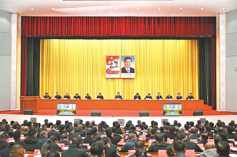 ཝང་ཅུན་ཀྲེང་གིས་ནན་བཤད་གནང་དོན། “དོན་ཆེན་བཞི”དོན་འཁྱོལ་ལ་སྤྱི་འདོམས་སྐུལ་འདེད་གཏོང་རྒྱུར་དམིགས་ཏེ། སྤུས་ཚད་མཐོ་བའི་ཁྲིམས་སྐྱོང་ལ་བརྟེན་ནས“ལོ་ལྔ་ཚན་བཅོ་ལྔ་པ”རིང་གི་བོད་ཀྱི་དཔལ་འབྱོར་དང་སྤྱི་ཚོགས་འཕེལ་རྒྱས་ལ་སྐུལ་འདེད་གཏོང་དགོས། ཡུན་རིང་བདེ་འཁོད་ལ་སྐུལ་འདེད་བཏང་ནས་ཁྲིམས་སྐྱོང་བྱེད་ཤུགས་ཆེ་རུ་གཏོང་རྒྱུར་དམིགས་དགོས་ཤིང་། སྤྱི་ཡོངས་ཀྱི་རྒྱལ་ཁབ་བདེ་འཇགས་ལྟ་བ་བརྟན་པོར་བཙུགས་ནས་སྤྱི་ཚོགས་བཅོས་སྐྱོང་ཁྲིམས་སྐྱོང་ཅན་གྱི་ཆུ་ཚད་མཐོ་རུ་གཏོང་དགོས་པ་དང་། ཚན་རིག་ཅན་གྱི་ལམ་སྲོལ་དང་དེ་བཞིན་རྒྱུན་རྣམ་ཅན་དང་ཁྲིམས་སྐྱོང་ཅན་གྱི་འདུ་ཤེས་ལ་བརྟེན་ནས་བརྟན་ལྷིང་སྲུང་སྐྱོང་གི་ལས་དོན་འཆར་ཅན་བཞིན་སྤེལ་ཐུབ་པ་དང་། དུས་རྒྱུན་དུ་སྤེལ་ཐུབ་པ། གཞི་རིམ་དུ་དོན་འཁྱོལ་ཐུབ་པ་བཅས་བྱེད་དགོས། བརྟན་ལྷིང་སྲུང་སྐྱོང་གི་ས་གནས་ཀྱི་ཁྲིམས་འཛུགས་ལ་ཤུགས་སྣོན་རྒྱག་པ་དང་། རང་སྐྱོང་ལྗོངས་ཀྱི་མི་རིགས་མཐུན་སྒྲིལ་ཡར་ཐོན་དཔེ་བཟང་ཁུལ་འཛུགས་གཏོད་སྲོལ་ཡིག་དང་རང་སྐྱོང་ལྗོངས་ཀྱི་ཆོས་ལུགས་ལས་དོན་སྲོལ་ཡིག་སོགས་ལག་བསྟར་ནན་ཏན་བྱེད་པ། ཀྲུང་ཧྭ་མི་རིགས་གཅིག་མཐུན་ཚོགས་པའི་འདུ་ཤེས་བརྟན་པོར་འཛུགས་པ། ཀྲུང་ཧྭ་མི་རིགས་གཅིག་མཐུན་ཚོགས་པ་འཛུགས་སྐྱོང་ལ་སྐུལ་འདེད་གཏོང་བ་བཅས་བྱས་ནས། མི་རིགས་ཆོས་ལུགས་ལས་དོན་བཅོས་སྐྱོང་བྱེད་སྟངས་ཁྲིམས་སྐྱོང་ཅན་དུ་འགྱུར་བའི་ཆུ་ཚད་མཐོ་རུ་གཏོང་དགོས། སྤུས་ཚད་མཐོ་བའི་འཕེལ་རྒྱས་ལ་སྐུལ་འདེད་བཏང་ནས་ཁྲིམས་སྐྱོང་བྱེད་ཤུགས་ཆེ་རུ་གཏོང་རྒྱུར་དམིགས་དགོས་ཤིང་། ས་མཐོའི་དེང་རབས་ཅན་གྱི་ཐོན་ལས་མ་ལག་མགྱོགས་མྱུར་སྐྲུན་པ་དང་ཡུལ་བབ་དང་བསྟུན་ནས་ཐོན་སྐྱེད་ནུས་ཤུགས་གསར་མ་འཕེལ་རྒྱས་གཏོང་བ་སོགས་ལ་གཞིགས་ནས།གཙོ་གནད་ཁྱབ་ཁོངས་དང་གསར་དར་ཁྱབ་ཁོངས་ཀྱི་ཁྲིམས་འཛུགས་ཁྲིམས་འཛིན་ལ་སྐུལ་འདེད་གཏོང་བ་དང་། འཛུགས་བཅོས་འདོར་གསུམ་གྱི་ལས་དོན་སྤྱི་འདོམས་ཀྱིས་ཡག་པོ་སྒྲུབ་པ། “ཁྲིམས་སྐྱོང་ནི་ཚོང་གཉེར་ཁོར་ཡུག་ཡག་ཤོས་ཡིན་པའི”འདུ་ཤེས་ཟབ་ཏུ་གཏོང་བ། ཁེ་ལས་དང་འབྲེལ་བ་ཡོད་པའི་ཁྲིམས་སྐྱོང་སྔར་བས་ཚད་ལྡན་དུ་གཏོང་བ། ཁྲོམ་ར་ཅན་དང་ཁྲིམས་སྐྱོང་ཅན་གྱི་ཚོང་གཉེར་ཁོར་ཡུག་ཧུར་ཐག་གཏོད་པ། རྒྱལ་ཡོངས་གཅིག་གྱུར་གྱི་ཁྲོམ་ར་ཆེན་པོའི་ནང་མཉམ་འདྲེས་ཐུབ་པར་རམ་འདེགས་བྱེད་པ། ཁྲིམས་སྐྱོང་ཁྱབ་ཁོངས་ནང་མང་ཚོགས་ཀྱིས་བསམ་འཆར་ཆེ་བའི་མངོན་གསལ་དོད་པའི་གནད་དོན་དུས་ཐོག་ཏུ་ཞིབ་འཇུག་དང་ཐག་གཅོད་བཅས་བྱས་ཏེ་བཅའ་ཁྲིམས་ཡག་པོར་བརྟེན་ནས་འཕེལ་རྒྱས་ལ་སྐུལ་འདེད་གཏོང་དགོས་ལ་བཅོས་སྐྱོང་བྱེད་མཁས་པོ་ཡོང་བའི་འགན་ལེན་ཡང་བྱེད་དགོས། རྒྱལ་ཁབ་ཀྱི་