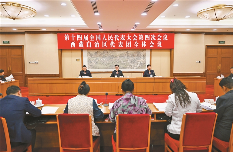 ཟླ་3ཚེས་11ཉིན། བོད་ཀྱི་འཐུས་མི་ཚོགས་པས་ཚང་འཛོམས་གྲོས་ཚོགས་འཚོགས་ནས་རྒྱལ་ཡོངས་མི་དམངས་འཐུས་ཚོགས་རྒྱུན་ལས་ཨུ་ཡོན་ལྷན་ཁང་གི་ལས་དོན་སྙན་སྒྲོན་དང་། ཆེས་མཐོའི་མི་དམངས་ཁྲིམས་ཁང་གི་ལས་དོན་སྙན་སྒྲོན། ཆེས་མཐོའི་མི་དམངས་ཞིབ་དཔྱོད་ཁང་གི་ལས་དོན་སྙན་སྒྲོན་བཅས་ལ་མུ་མཐུད་གྲོས་ཞིབ་གནང་བ་དང་། སྲིད་གཞུང་གི་ལས་དོན་སྙན་སྒྲོན་དང་། “ལོ་ལྔ་ཚན་བཅོ་ལྔ་པའི”འཆར་འགོད་ཀྱི་རྩ་གནད། ལོ་འཁོར་གྱི་འཆར་གཞི། ལོ་འཁོར་གྱི་སྔོན་རྩིས་བཅས་ཀྱི་གྲོས་ཆོད་འཆར་ཟིན་ལ་གྲོས་ཞིབ་གནང་བ་རེད།